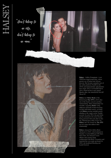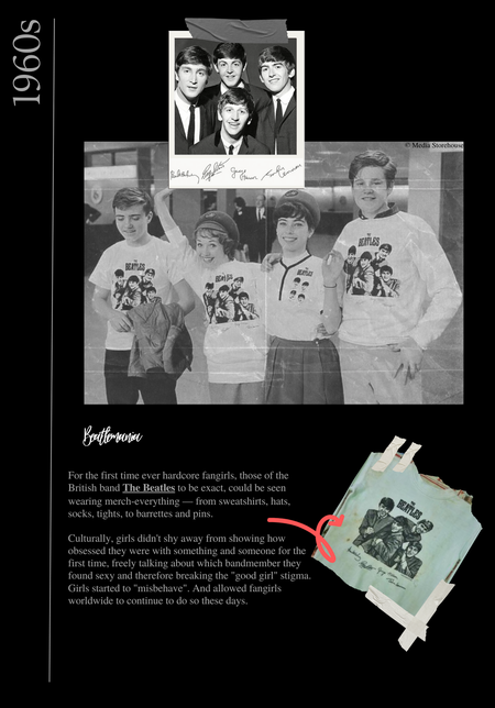 For one of my final assessments at BIMM, I created another zine. As I‘ve been a part of different fandoms since I can remember — from when I first saw Miley Cyrus in her blonde Hannah Montana wig, One Direction jump around on a beach for the music video to their hit song 'What Makes You Beautiful', Matty Healy being adored by girls in a music video to a song with exactly that title ('Girls') to Halsey running around a motel and ending up in 'Room 93' — and I experienced all of them moulding my identity and self expression, I wanted to explore the origin and development of fans, as well as their object of fandom, and how both set significant trends, make important statements and impact culture & society.